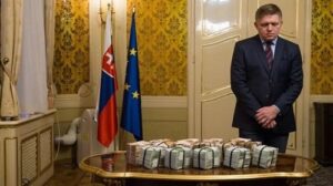 Sobre la lujosa mesa con motivos decorativos dorados, un millón de euros en efectivo. Junto a ella, escoltado por el jefe de la policía y el ministro de Interior, el primer ministro Robert Fico anuncia el 28 de febrero de 2018 la jugosa recompensa a cambio de información sobre el asesinato del periodista de investigación Jan Kuciak y su pareja, Martina Kusnirova. Había pasado una semana del homicidio, la gente salió masivamente a las calles a protestar contra la corrupción y Fico trataba de capear el temporal. Acabaría dimitiendo días más tarde.