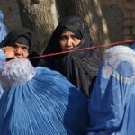La tradicion dicta que las mujeres de Afghanistan deben cubrir no solo su cuerpo, sino todo su rostro, dejando aberturas muy pequenas en el velo para poder ver. En caso de las dos mujeres en esta imagen que no tienen cubierto completamente su rostro, podria resulta en un posible arresto por la policia de la moralidad :