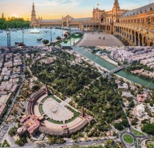 Y mientras, desde la Plaza de España de Sevilla que mira a América, os mantenemos el permanente abrazo simbólico de España con los brazos abiertos a Hispanoamérica.